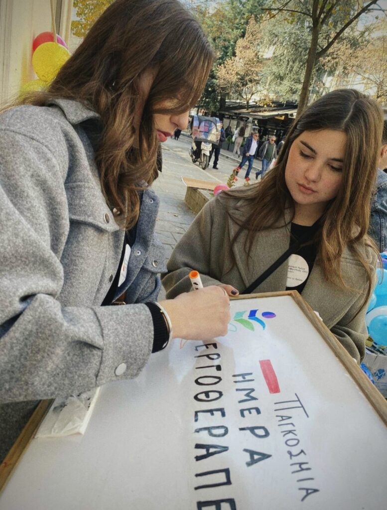 Η ημέρα ήταν γεμάτη ενθουσιασμό και ουσιαστικές αλληλεπιδράσεις: γνωρίσαμε επαγγελματίες υγείας που αγαπούν πηγαία το έργο τους, ενώ συνάμα προσεγγίσαμε περαστικούς, ενθαρρύνοντάς τους να συμμετέχουν σε μικρές αλλά βαθιά συμβολικές δραστηριότητες που ανέδειξαν την αξία της εργοθεραπείας στην καθημερινότητα. Η εμπειρία αυτή αποτέλεσε μια δυνατή στιγμή εθελοντισμού· δώσαμε από καρδιάς, αλλά λάβαμε ακόμη περισσότερα μέσα από τα χαμόγελα, τη σύνδεση και το αίσθημα κοινότητας.